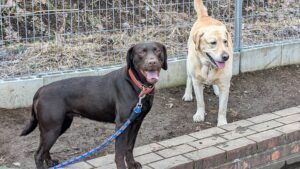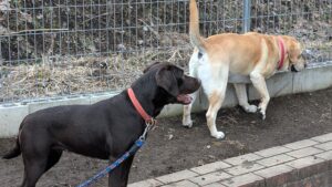 ※引取りに伺った際にはもう2頭、メスのラブラドールレトリバーがいました(この子たちは、しし丸営業部長の伯母さんに当たるので交配はできません)。