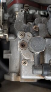 アジャストスクリューはアクセルリンクの近くにあります。​