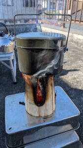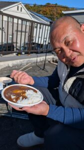 ②飯盒炊きのごはんと、淡路島産の玉ねぎを使ったレトルトカレー
