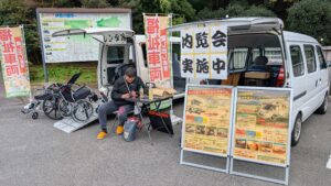 そうそう、内覧会も行っていたのです。それが一味異なり、【福祉車両】の内覧会だったのです。11月2日(日)に伊豆の国市 まごころ市場において開催しました。当日は曇り空のうえ風も強く寒い一日でした。まごころ市場ではご近所の方が出品した農作物が人気のようで、開店と同時に売り切れてしまうものもあったとか…。開店時の混雑は【危険】さを感じるほどの混雑ぶりでした。