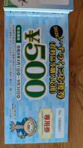 私の住む伊豆の国市では【いずのくに応援券(食料品等購入応援)】という優待券が発行されています。